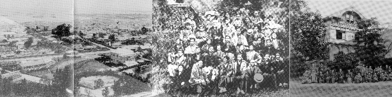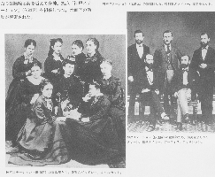 1880年代信徒群像 明治の初めの信徒の生活はどのようなものだったのだろう。「神戸教会規則」によれば、まず礼拝が第一義的なものとして守られ、信徒は生活上の多大な犠牲を払いつつも日曜日に集い、祈り、食し、交わりをともにした。教会組織は牧師のほかに、世話役としての執事が選出され、会議制によって民主的に運営された。神戸教会では早くより女性の執事が選ばれた。会員は収入に応じて月毎に献金をささげ、伝道と教会維持に充てた。古い共同体規制の枠からは、いくぶんはずれた新興地であるとはいえ、彼らのキリスト教に立つ新しい生き方は、少数派としての気概と困難にみちていた。(写真左:草創期の男性会員。神戸女学院にて撮影。写真右:1884年松山高吉送別会に集まった女性会員。神戸女学院にて撮影。) |
