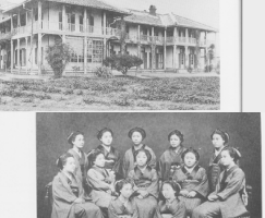 1886年女性信徒の活躍 欧化主義を背景とするキリスト教界の活況は、女性のめざましい社会活動をうながした。1886年には「婦人英学会」「神戸婦人会」「神戸婦人禁酒会」が相次いで発足。また同年11月には、伝道者養成所として「神戸女子神学校」が創設された。さらに、貧困などの社会問題への視角をもつ「禁酒会」は「日本婦人矯風会」の端緒に、「神戸婦人会」の働きは頌栄保母伝習所・頌栄幼稚園(現、頌栄保育学院)の創設につながる力量をみせた。そしてこれらの多彩な活動が、女性宣教師のもとで育てられた神戸女学院の初期卒業生や、その母親の世代に当たる女性たちによってになわれたことに注目したい。このような女性層の存在は、神戸におけるキリスト教受容や伝播の経路として、重要な位置を占めた。彼女たちのはたらきが、さらに新しい世代の女性を育むという層の厚さを増しつつ、現代にいたる流れを形づくった。(写真:神戸女子神学校の校舎。) |