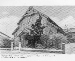 1888年下山手の会堂 教勢の飛躍的進展にともない、教会は下山手6丁目(現在の中央区花隈)に敷地を購入。1888年、教会堂を竣工した。近代都市の様相をととのえだした神戸にふさわしいモダンで美しい会堂は注目を集め、講演会や音楽会など都市の多元的要求にこたえる、開かれた会堂としての役割もにない、教会内外の人々に親しまれた。 |